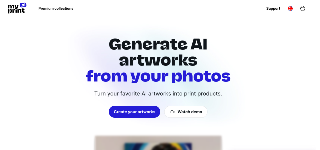 AI tool generates unique artworks from user photos, offering various themes, print products, and user-friendly interface.