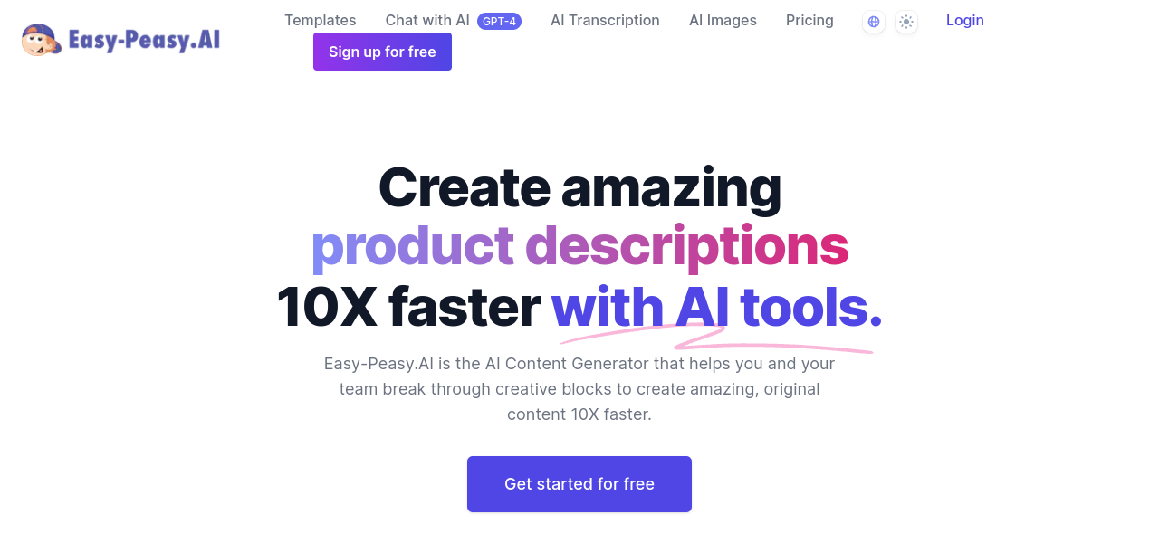 AI-powered content assistant to streamline content creation with copy templates, image generation, transcription, and AI buddy.