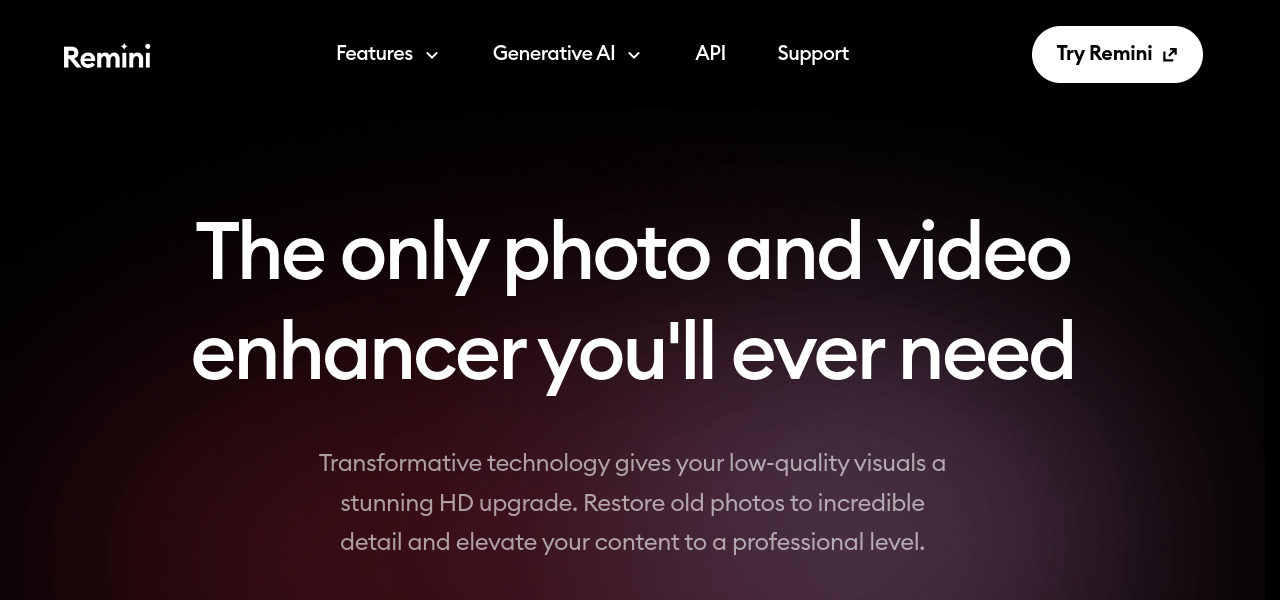 Remini: AI tool that enhances old photos with high accuracy, speed, upscaling, and web/mobile options.