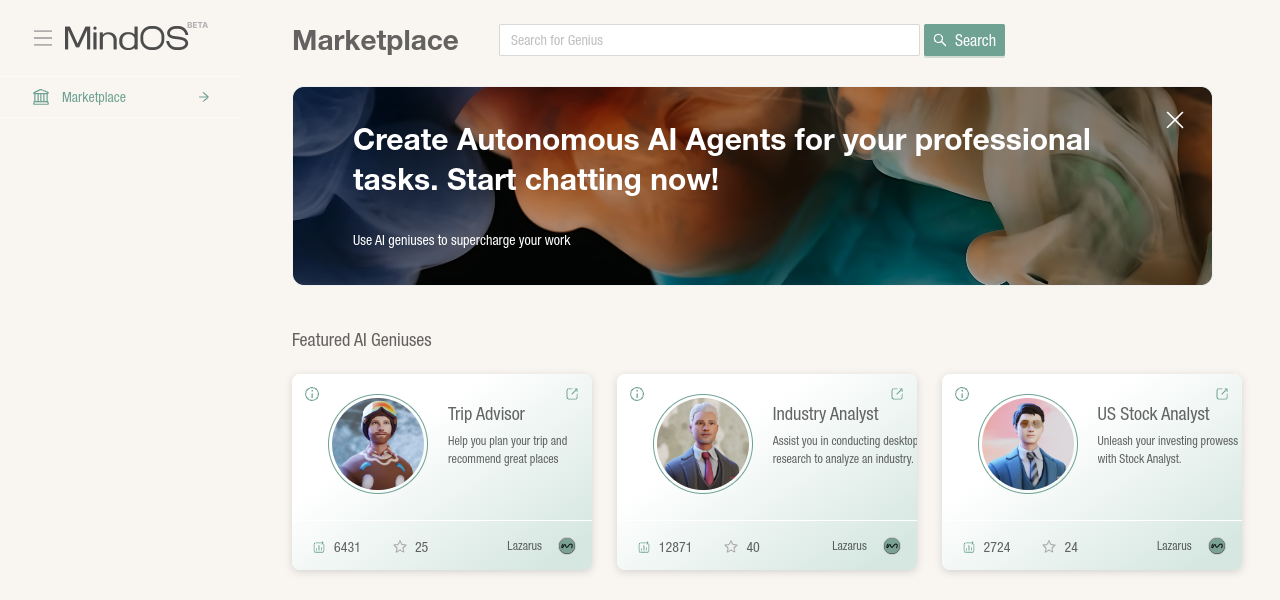 Groundbreaking AI marketplace for conversing with and utilizing AI Beings as personal advisors for various needs.