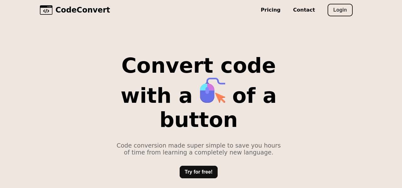 Seamless code conversion across languages with a simple click, free and accessible without logging in.