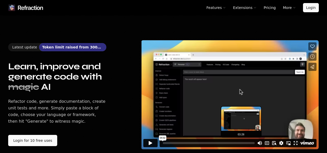 AI-powered code improvement tool automates refactoring, testing, and improves code quality for efficient software development.