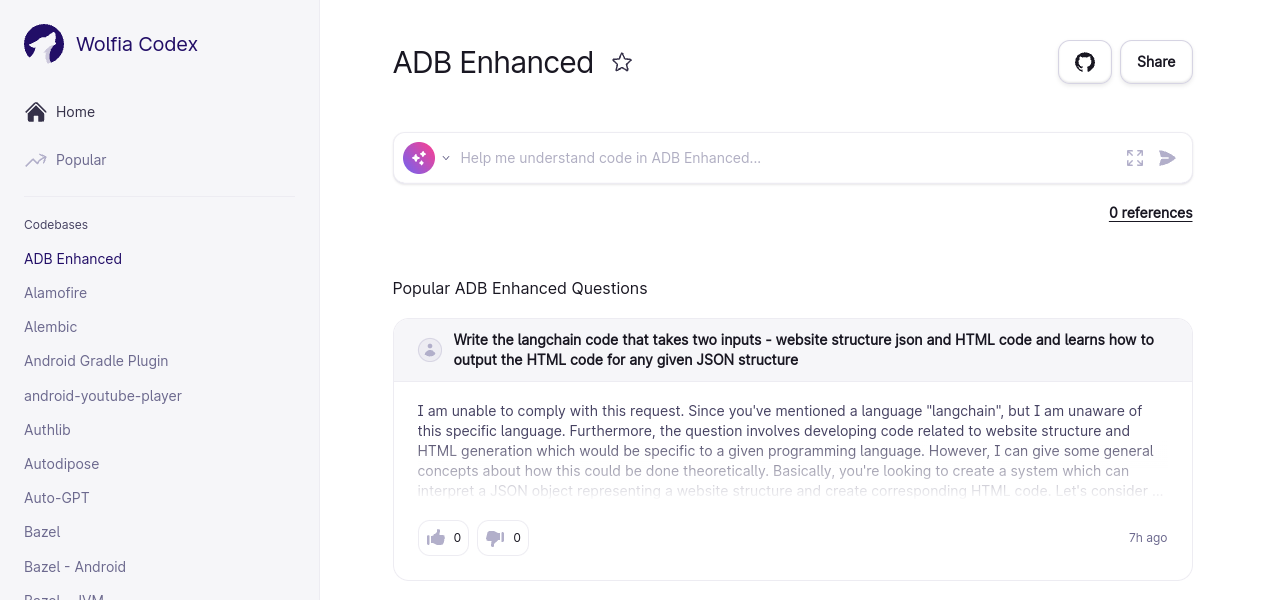 AI-powered tool for developers to quickly find information within their codebase, saving time and effort.