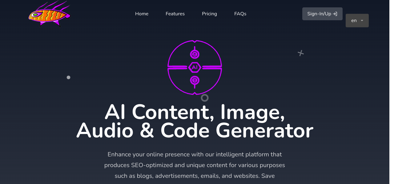 AI tool for SEO content, graphics, audio transcription, industry-specific chatbots, and code generation.