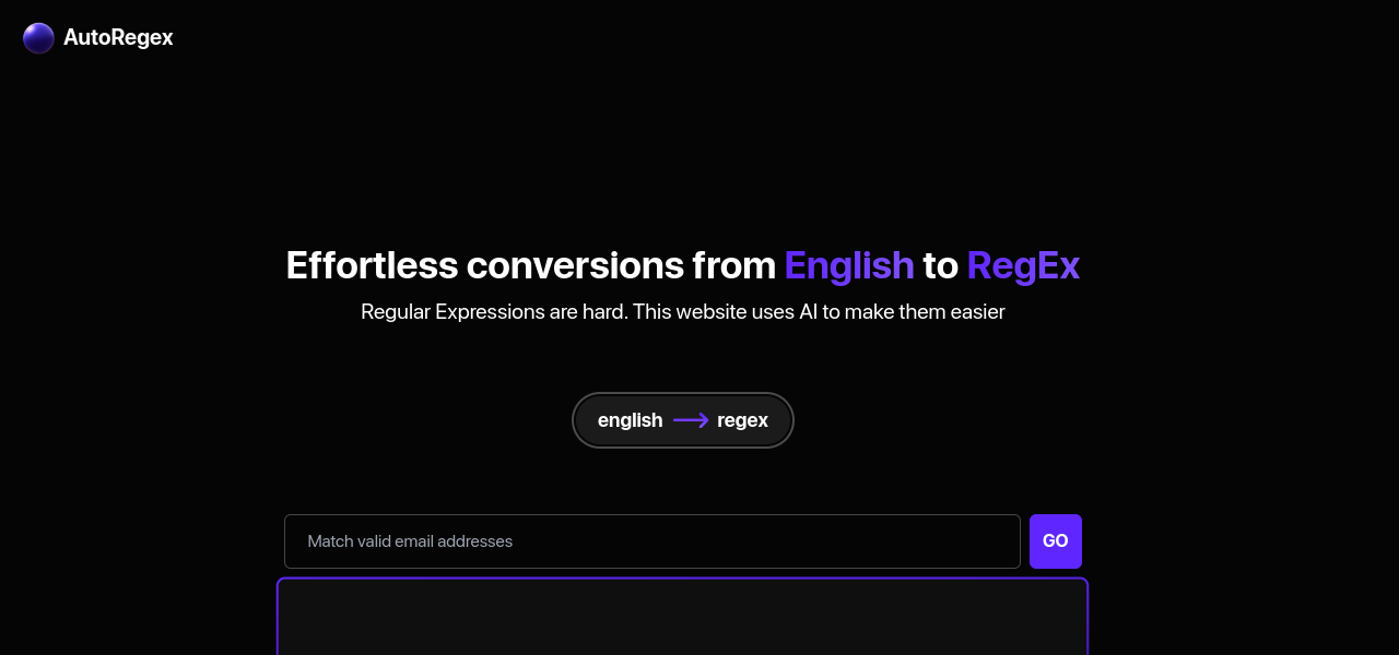 AI-powered tool that simplifies creating RegEx patterns by translating English into RegEx without coding.