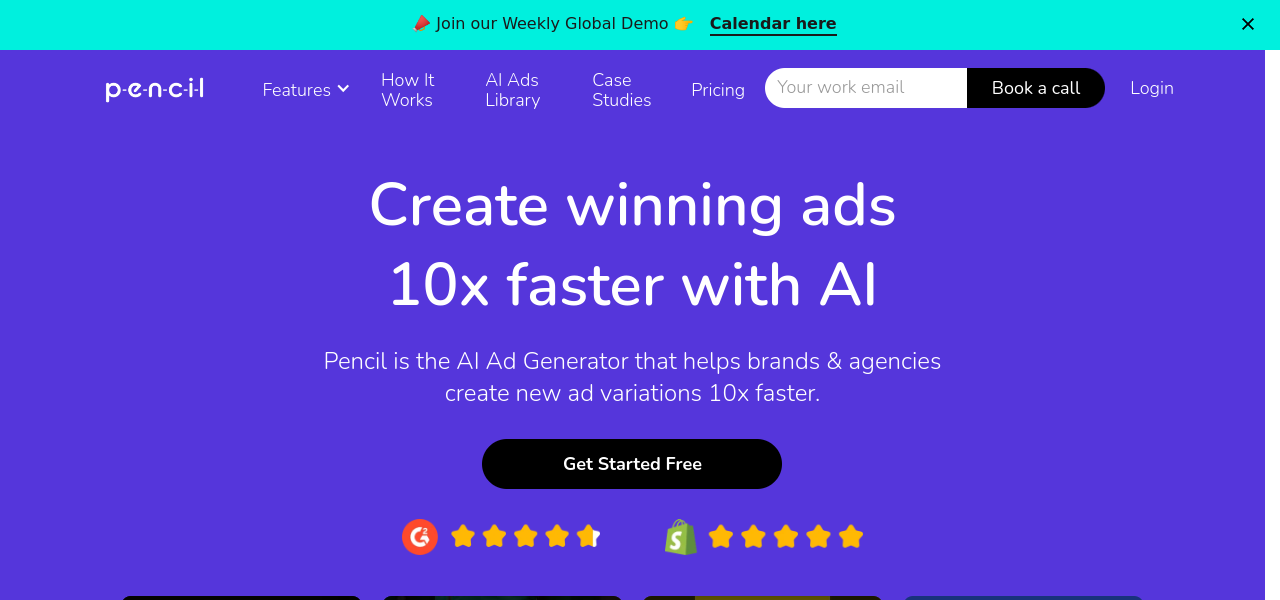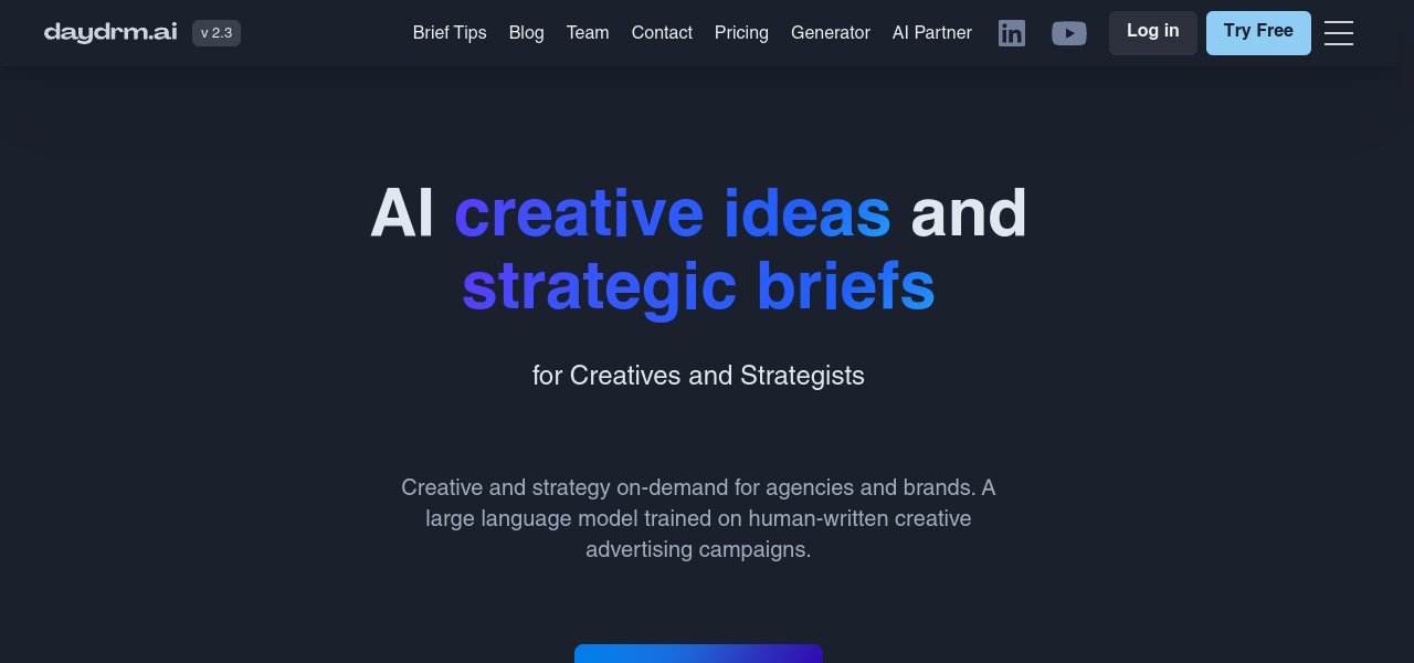 AI-powered tool generating creative advertising ideas for various content formats, with a user-friendly interface.