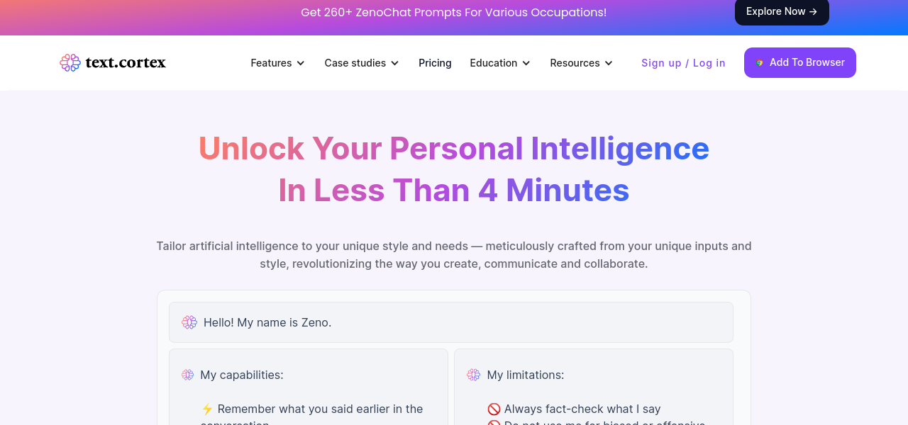 TextCortex: AI writing tool that enhances writing, recommends improvements, and boosts creativity across various platforms.