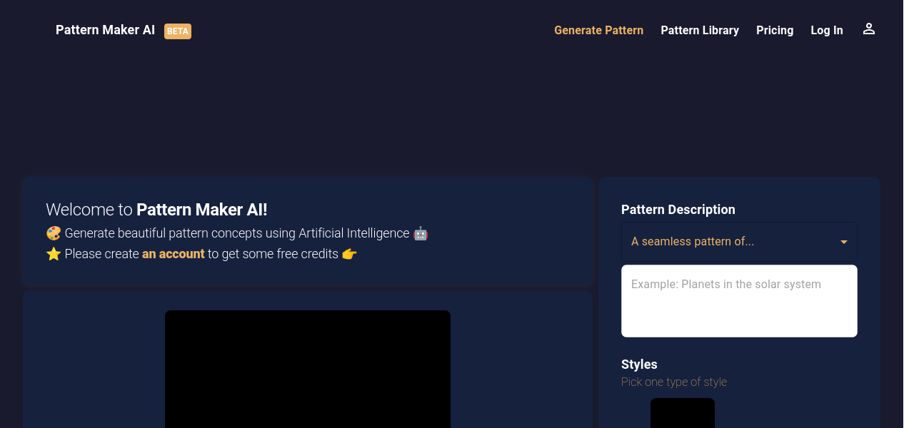 Powerful AI tool for creating unique vector patterns with a variety of styles and customization options.