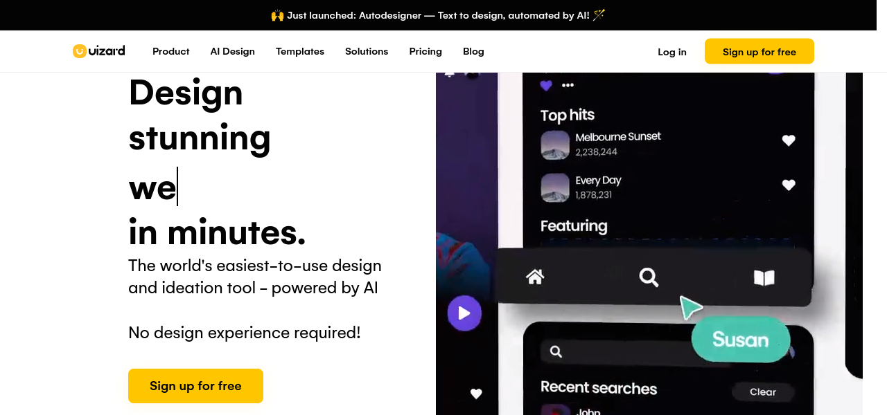 AI-powered design tool that creates digital products, mobile apps, website mockups, and wireframes in minutes.