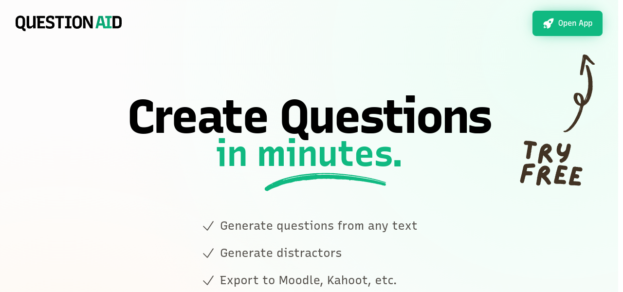 Question Aid: Generate quizzes from text, create distractors, export to LMS platforms. Effortlessly create engaging educational content.