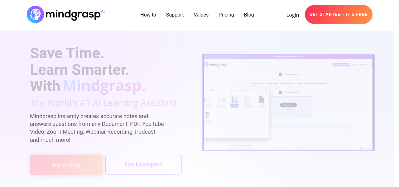 Generate accurate notes and answers from various sources with Mindgrasp.