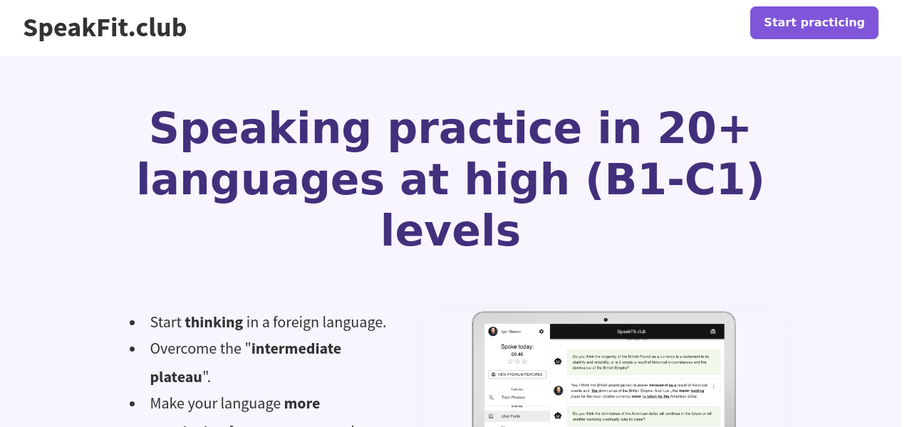 AI-powered language learning app for advanced-level speaking practice with personalized topics and voice recognition.