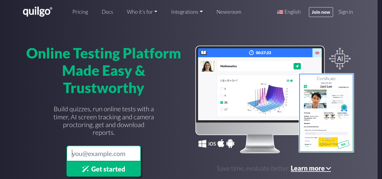 Comprehensive online testing platform with user-friendly interface, AI proctoring tools, scheduling, and integration with Google Forms.