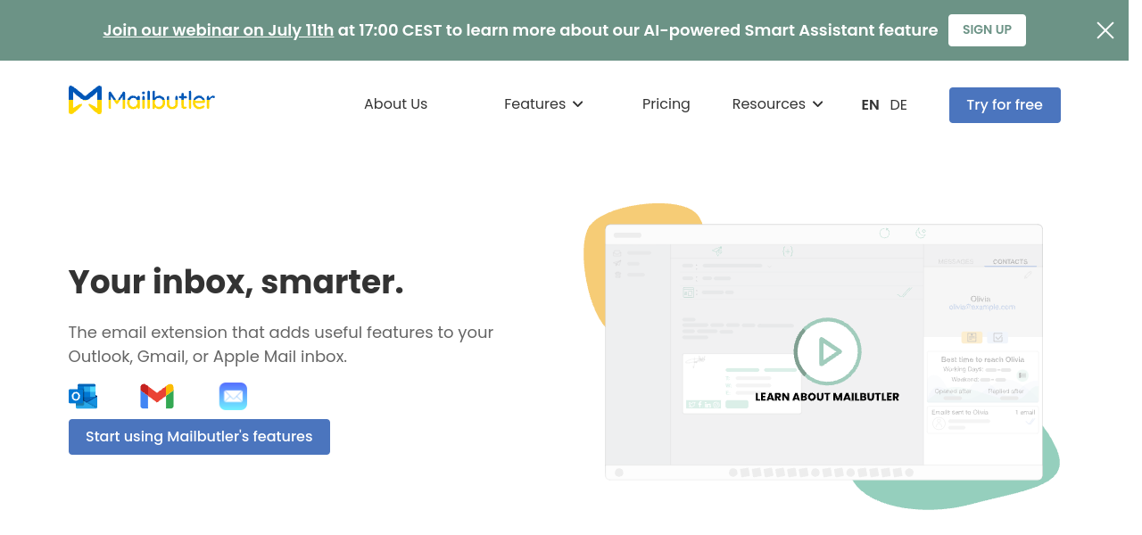 Enhance email management with Mailbutler’s AI-powered Smart Assistant, saving time and boosting productivity.