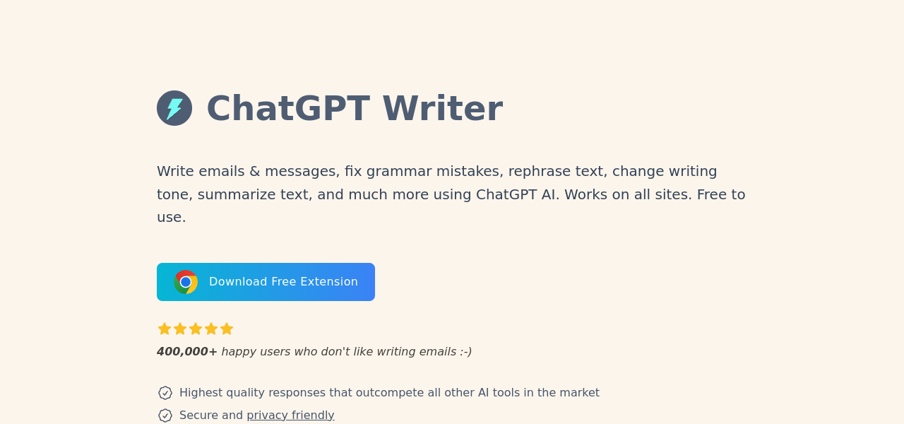 AI-powered, privacy-friendly Chrome extension for fast, high-quality email and message composition.