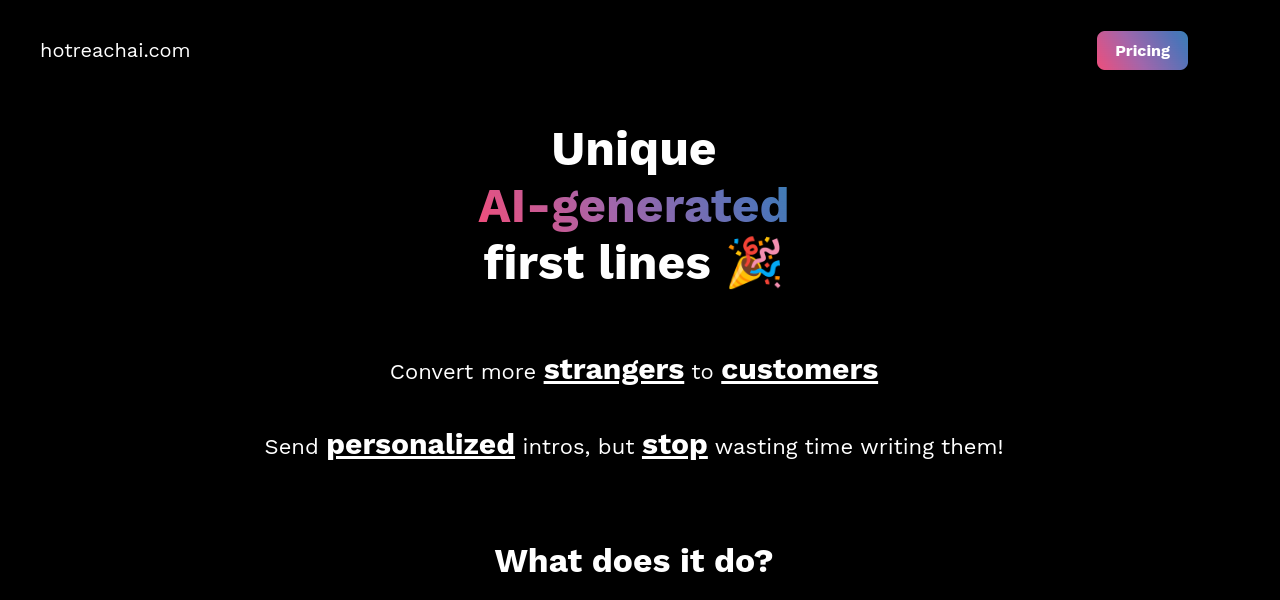 AI-powered tool generates personalized first lines for cold outreach emails, enhancing response rates and increasing conversions.