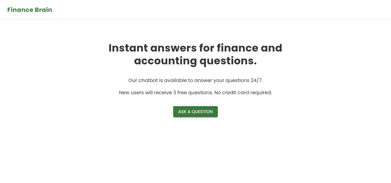 24/7 finance and accounting chatbot with instant answers and a free trial for new users.
