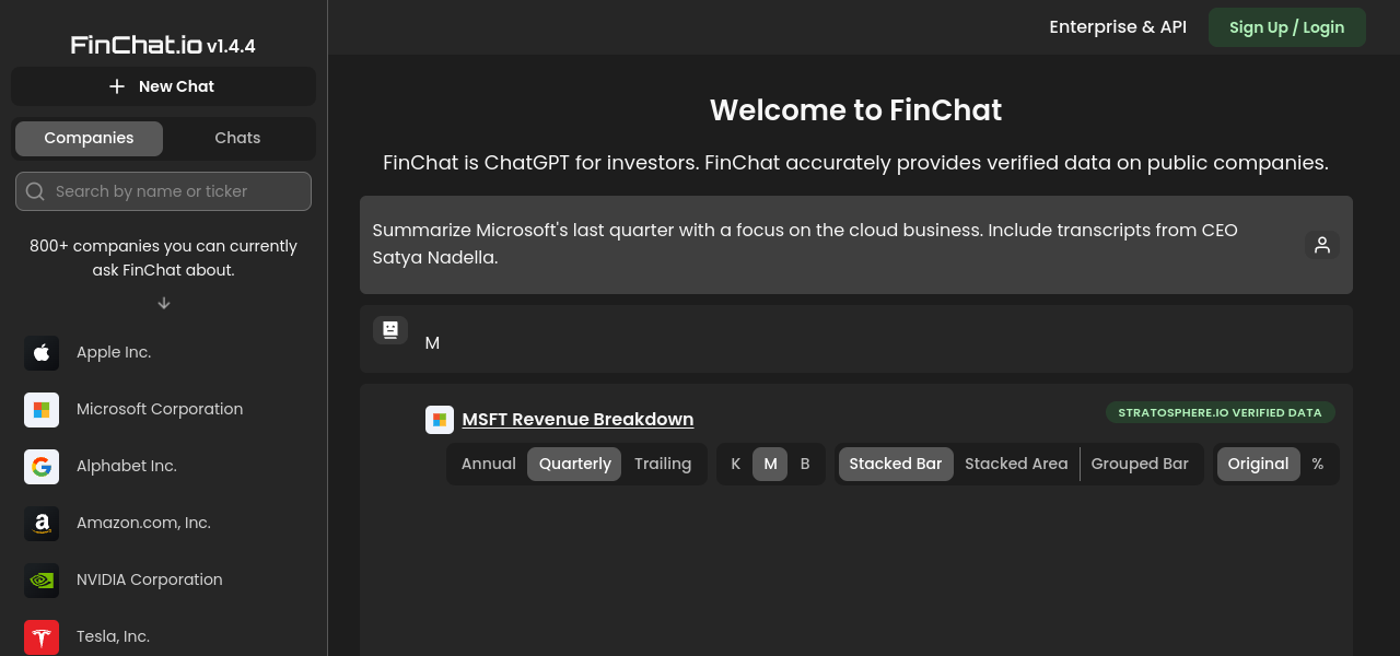 AI-powered chatbot with extensive coverage and real-time data for the finance industry. Quick, accurate answers.