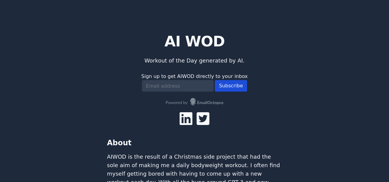 AIWOD generates personalized AI-powered bodyweight workouts for fitness enthusiasts, ensuring variety, engagement, and motivation.