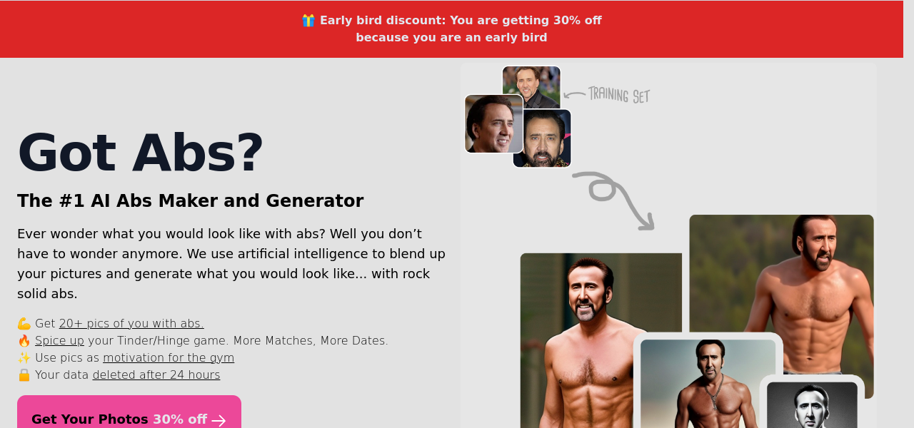 AI-generated images of what you would look like with rock solid abs. Quick, easy, and realistic.