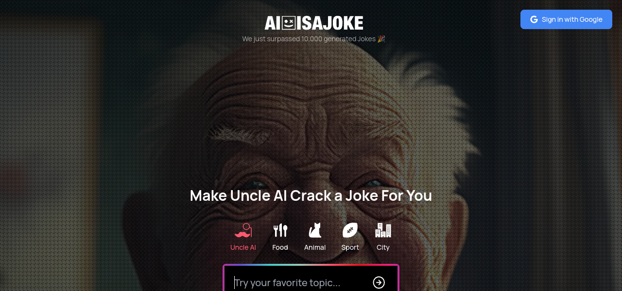 AI-powered tool generating jokes effortlessly, with customizable prompts, recent jokes, and accessible information.