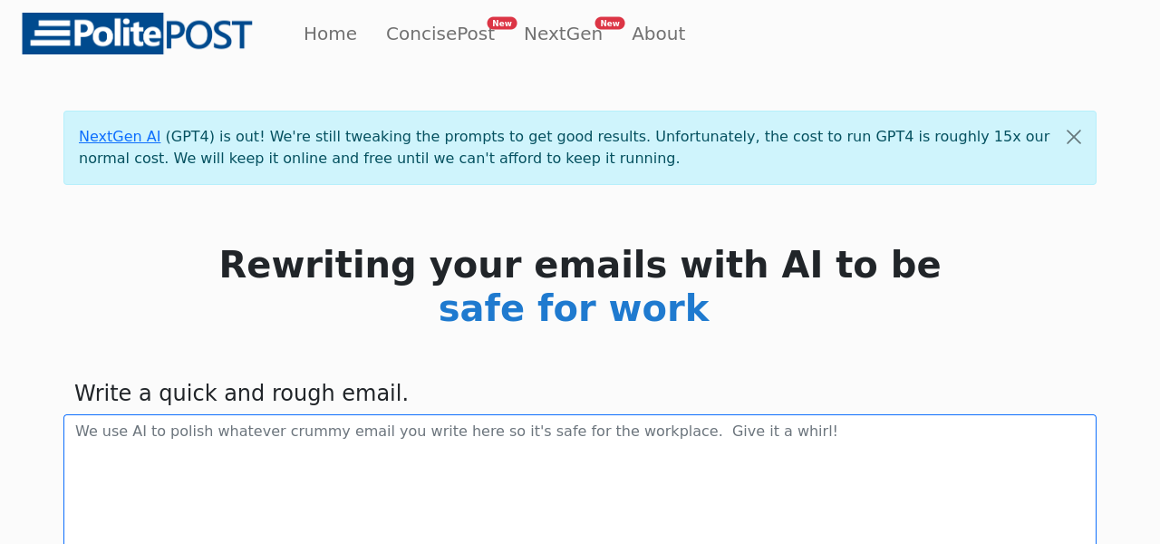 AI tool that cleans and refines email drafts, ensuring workplace-appropriate communication. Works with various email platforms.