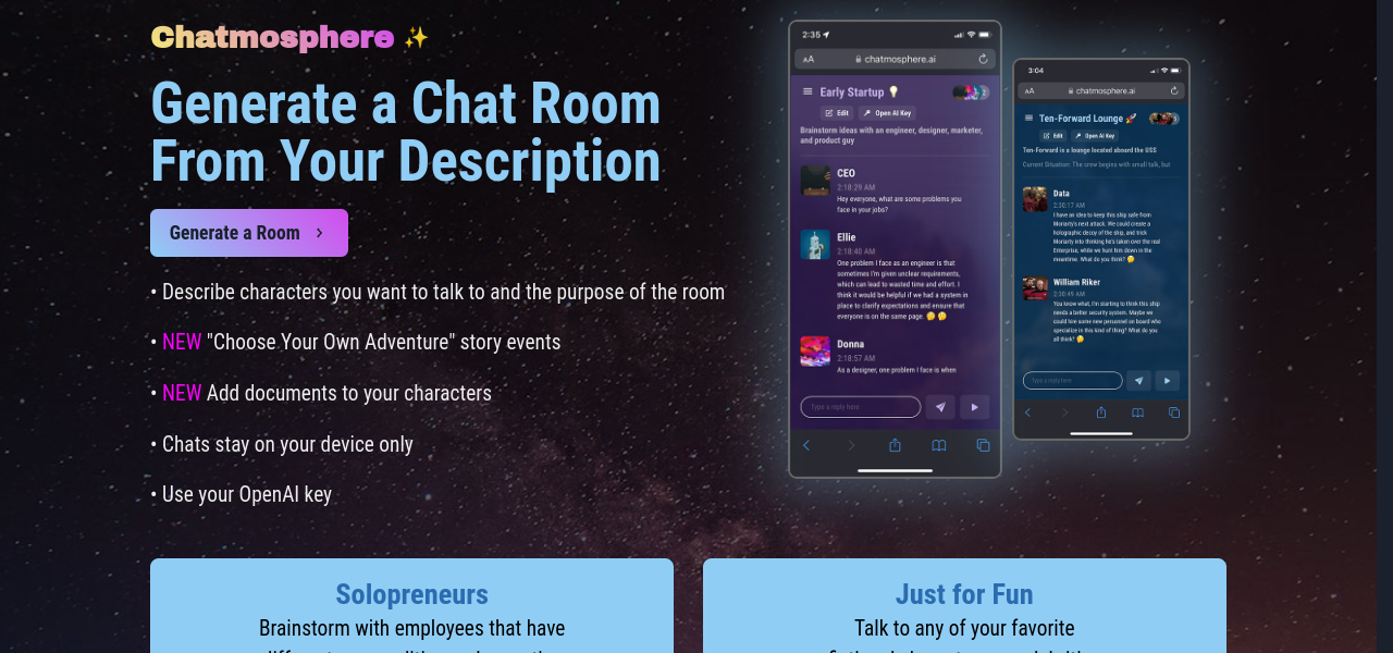 AI-powered chat tool for dynamic and engaging group discussions with characters and team members.