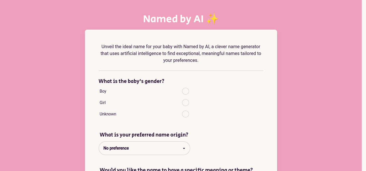 AI-powered tool generates personalized, unique, and meaningful names for newborn babies and characters.