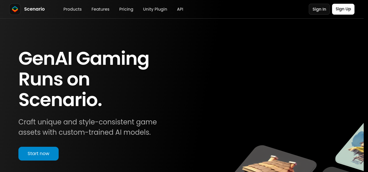 AI generates game assets, providing high-quality, consistent, unique assets for game development.