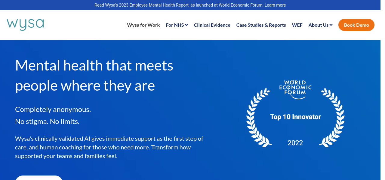 AI-powered support platform for mental well-being, offering CBT programs, self-care exercises, and access to professionals.