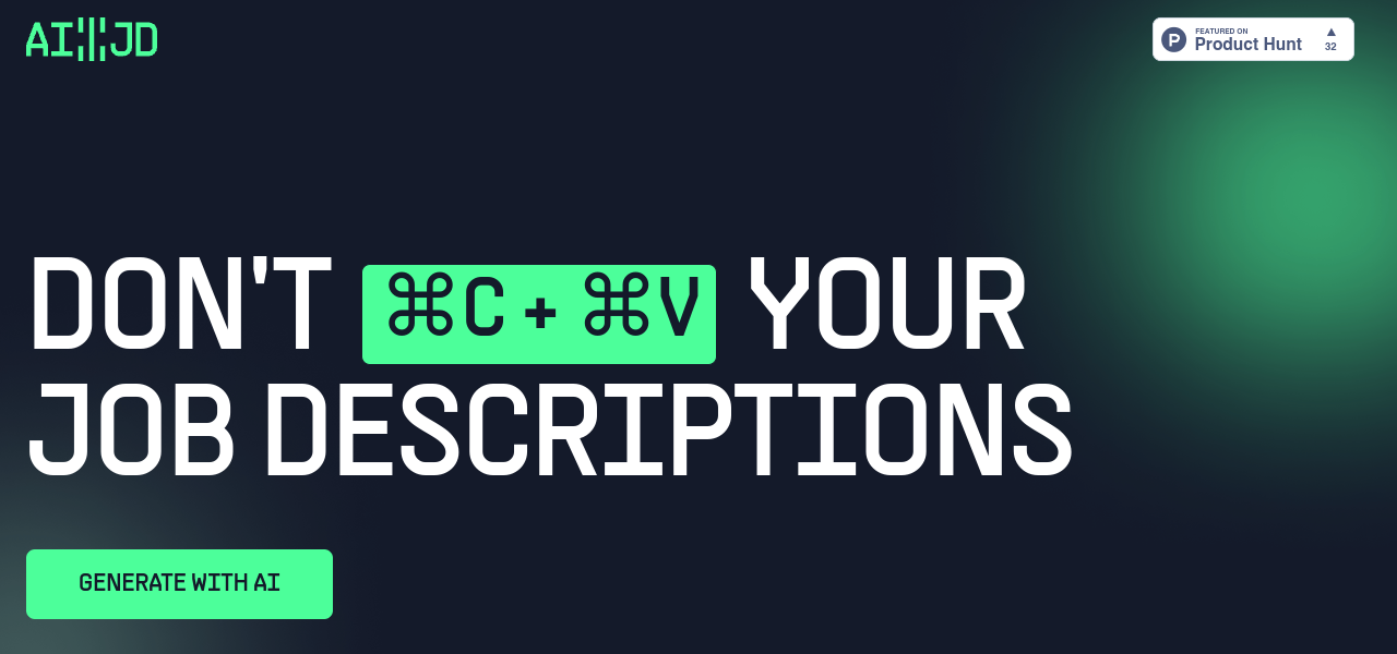 AI-powered job description generation tool for quick, customized and cost-effective job description creation.