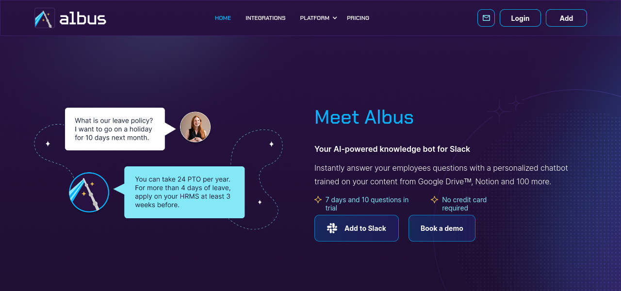 Conversational AI platform automating employee support, maximizing productivity across IT, HR, finance, facilities, and communications teams.