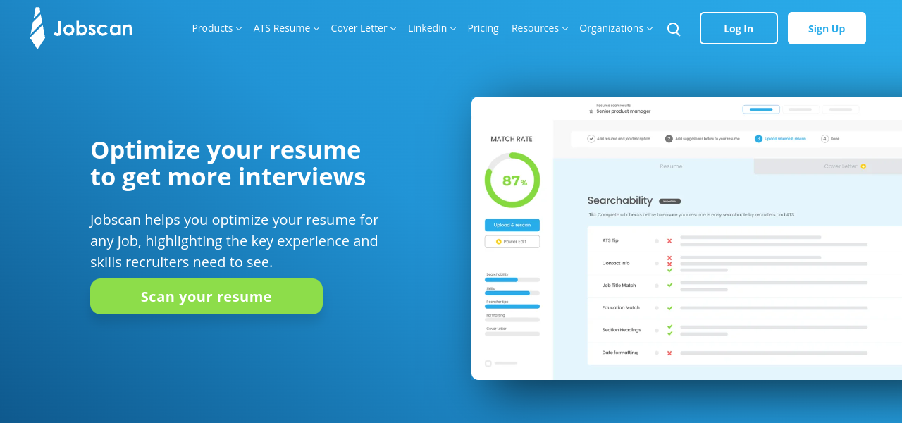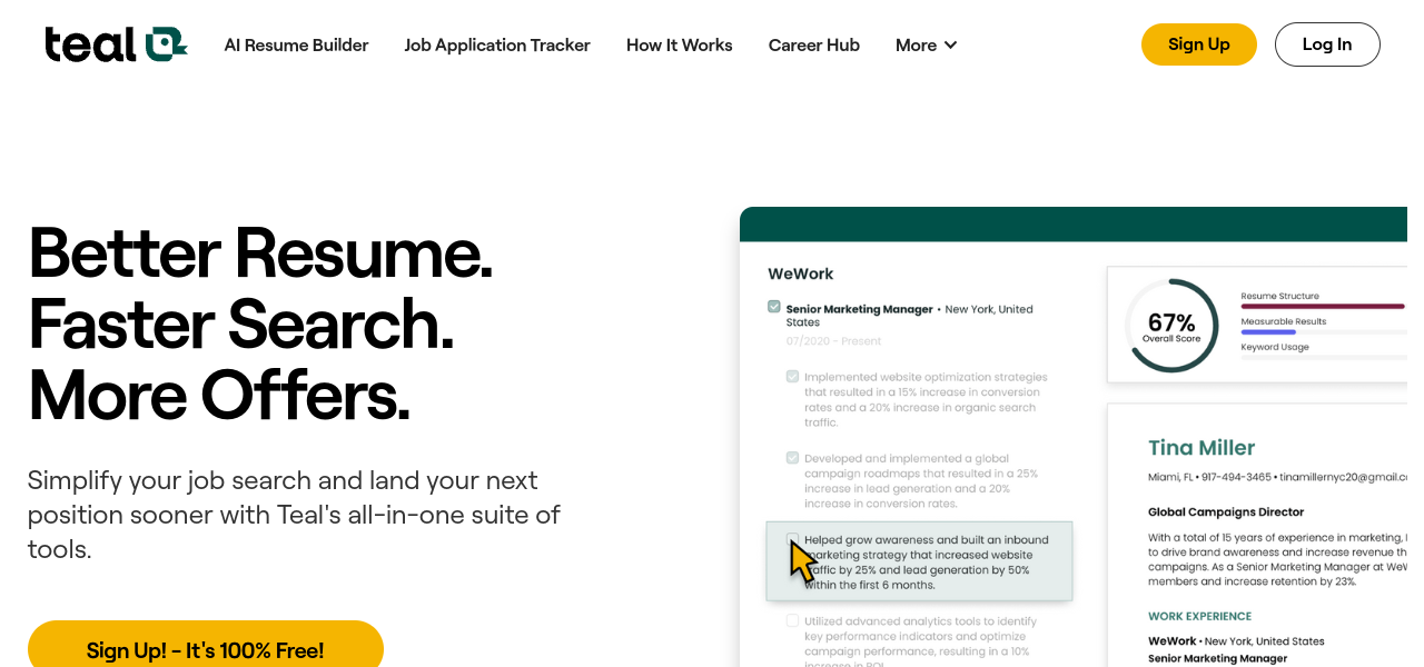 Time-saving resume builder for quickly creating, improving, and capturing recruiters’ attention to secure interviews.