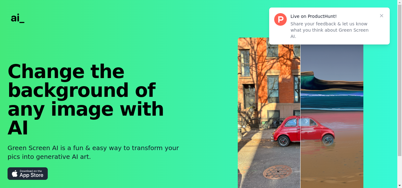 Green Screen AI: Easily change image backgrounds with AI-generated art for fun, shareable results.