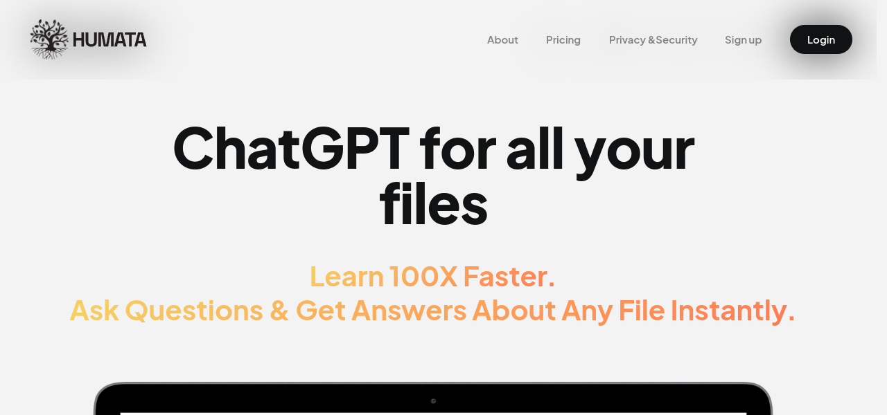 Humata AI: AI chatbot for file management. Instant answers, faster research, data extraction, Q&A, automatic writing.