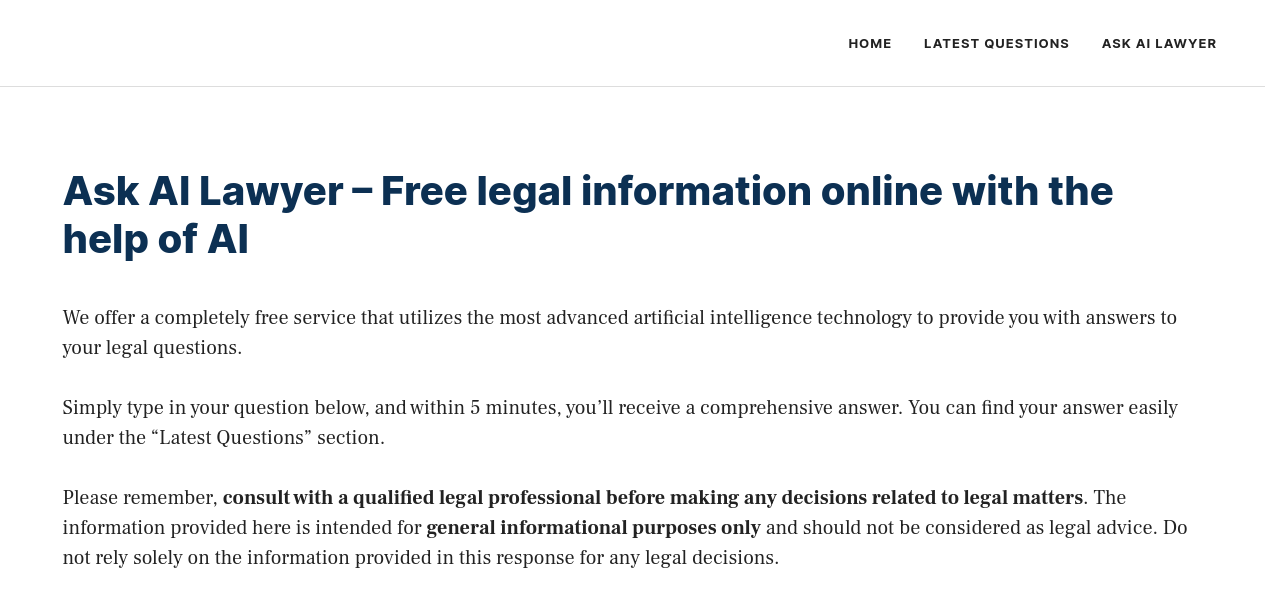 Free AI tool that provides accurate answers to legal questions in 5 minutes or less.