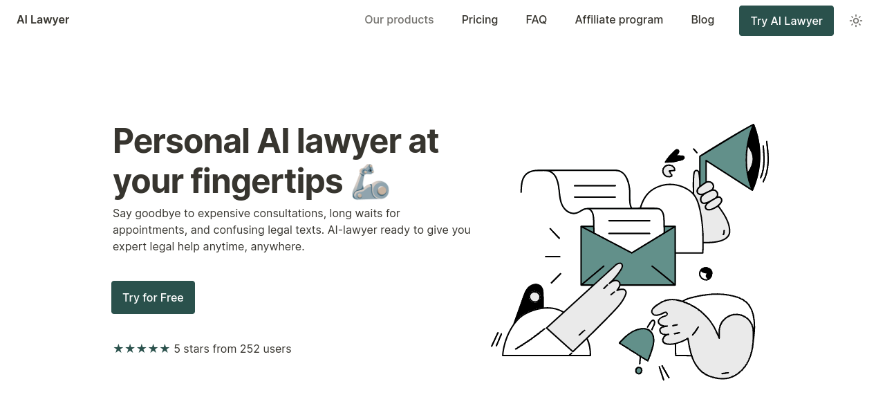 AI-powered legal assistant for lawyers, offering drafting, research, SEO optimization, social media management, and law updates.