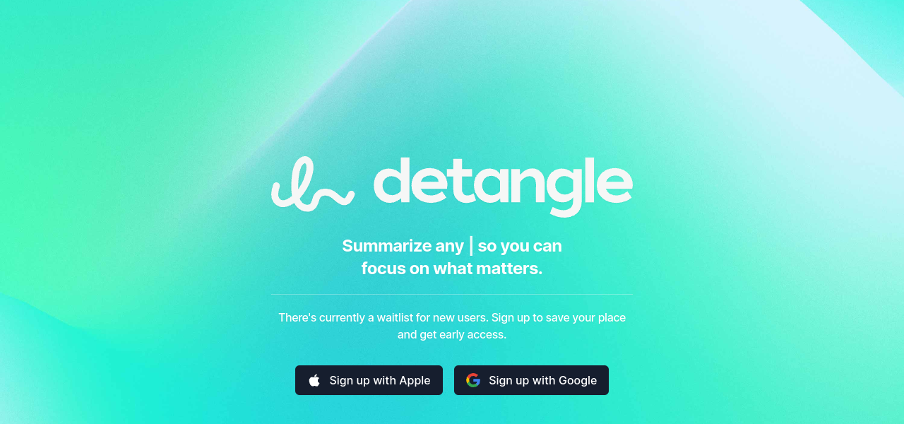 Detangle.ai: AI-based tool quickly summarizes video, audio, or text content, saving time and effort.