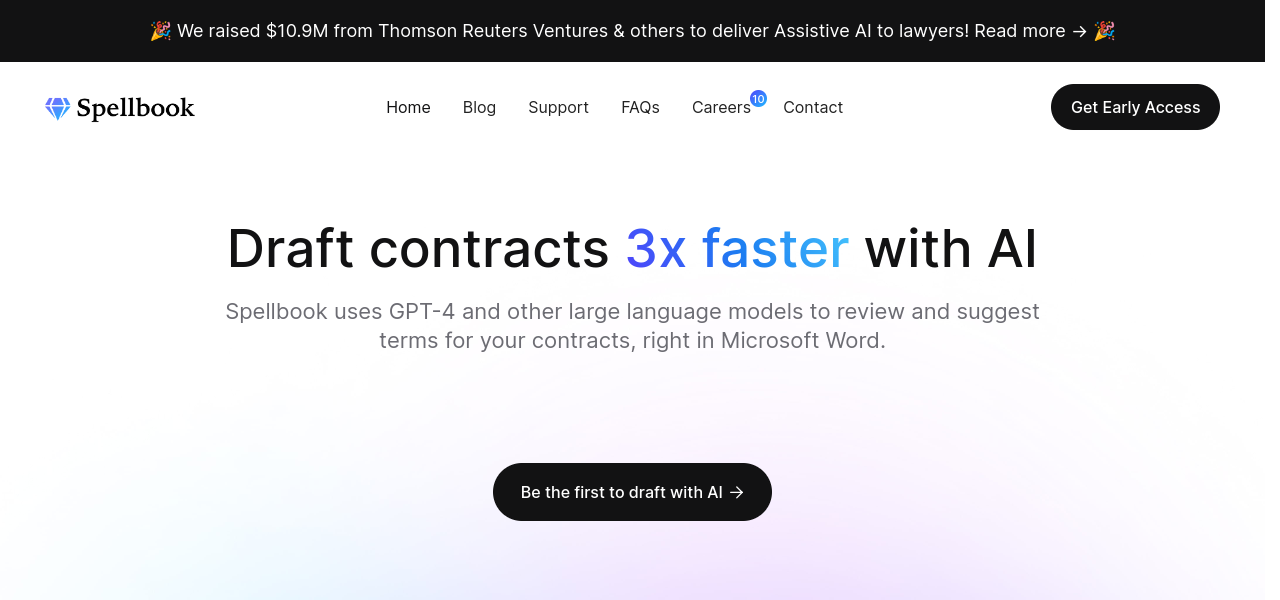 AI-powered contract drafting tool that suggests language for contracts, increasing speed by 3x.