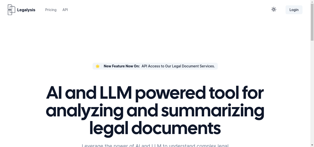 AI-powered tool simplifying legal document analysis and summarization, identifying risks and generating concise summaries.