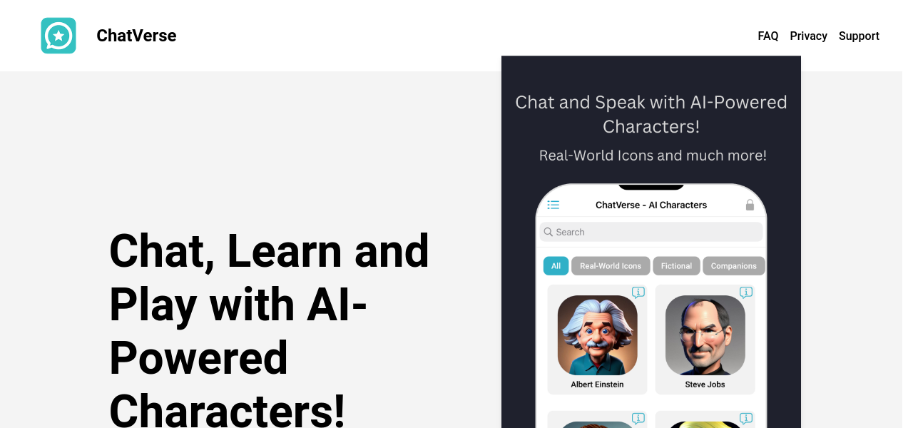 Interactive AI chat platform with diverse characters for learning, advice, entertainment, and companionship.