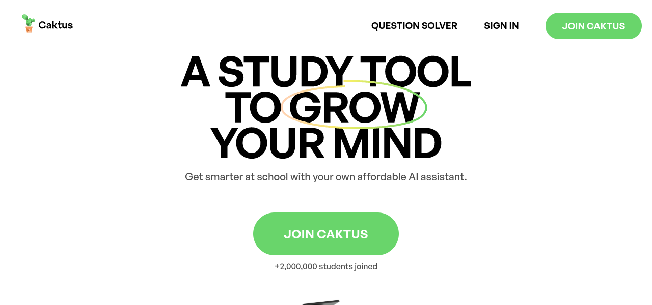 Caktus: AI tool automating school work, offering essay writing, coding, discussion questions, summaries, and career resources.