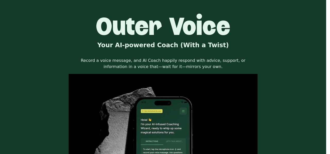 AI coach that provides personalized advice and reflections through voice messages for self-improvement, mental health, and productivity.