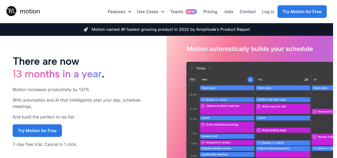 Motion: AI tool that automates scheduling, task management, project management, and meeting organization. Save time, stay organized.