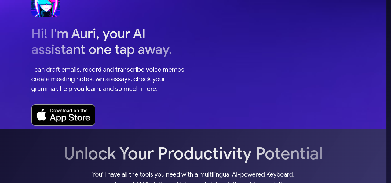 Enhance your writing with Auri AI, a multifunctional, multilingual, customizable, privacy-first chatbot writing assistant.