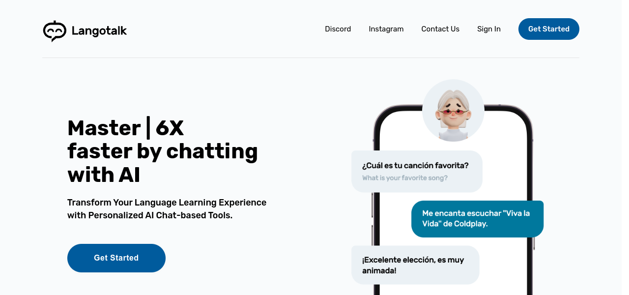 An AI-based language learning platform that offers instant learning, realistic conversations, translation, achievements, and quick registration.