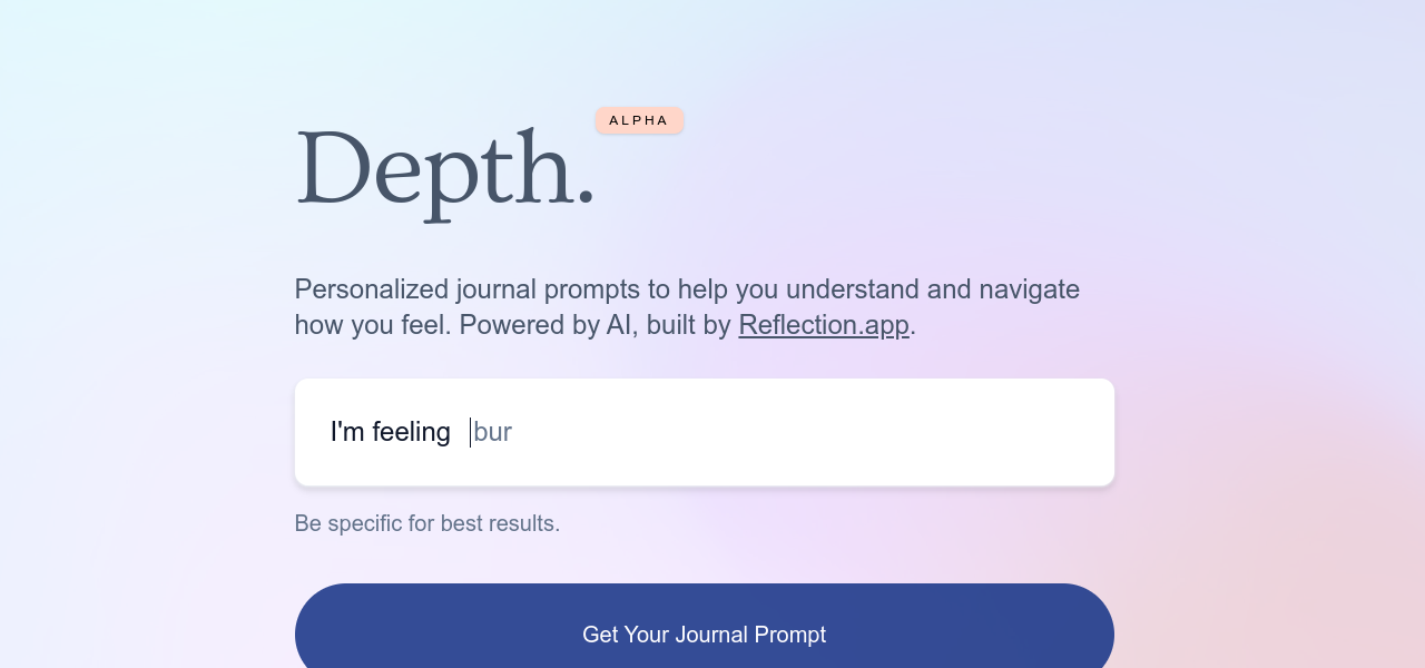Depth: AI-powered journaling for emotional self-reflection and growth. Receive prompts, explore emotions, find peace, foster gratitude.