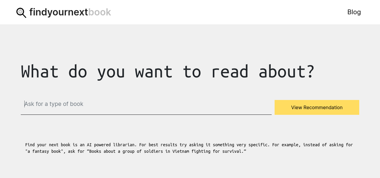 Book recommendation service based on user descriptions of desired read; recommends from database of thousands of books.