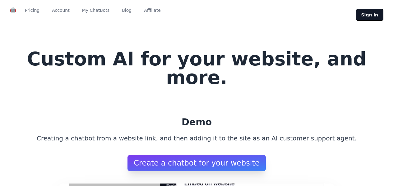 AI Chatbot builder for creating custom chatbots from content quickly, with fast creation and secure storage.