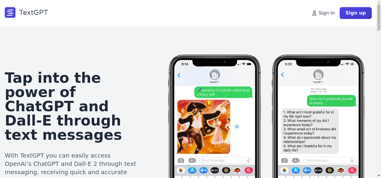 TextGPT: Quick, accurate answers and realistic image generation through text messaging using OpenAI’s GPT and Dall-E.